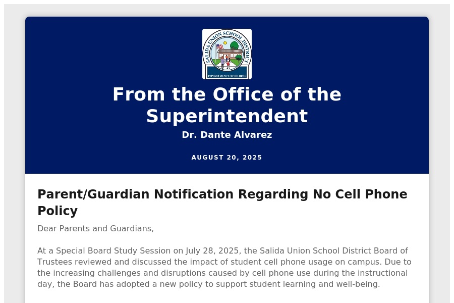 Salida Union School District uses ParentSquare as the primary communication tool for families.